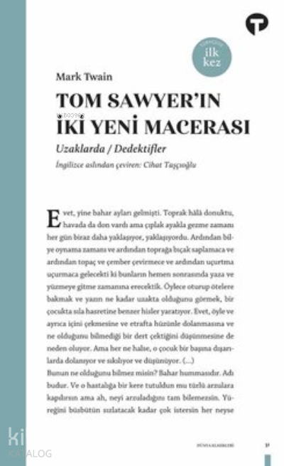 Kahramanlarımız Tom Sawyer ile Huckleberry Finn'i yeniden bir araya getiren bu kitap, büyük hiciv ustası Mark Twain'in Türkçede daha önce yayınlanmamış iki novella'sından oluşuyor: Uzaklarda ve Dedektifler.Uzaklarda, bir yolculuk hikayesi, Dedektifler ise, adı üstünde, bir polisiye. Her iki novella'da da çok sevdiğimiz Mark Twain mizahı dorukta.