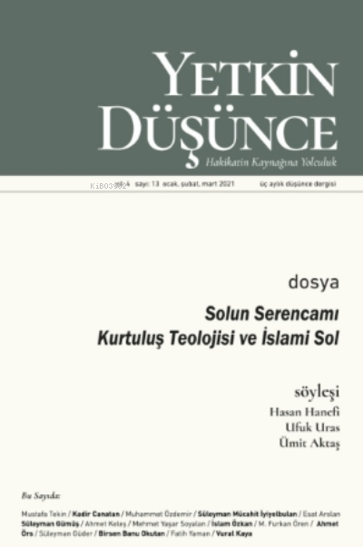 YETKİN DÜŞÜNCE - Yıl: 4, Sayı:13 “Sol'un Serencamı, Kurtuluş Teolojisi ve İslami Sol” dosyası ile çıkan bu sayıda; Sol'u kapağa taşıdık. Aslında, Sol'u; toplumun inşası ve iktidar/yönetim konusunda iddialı olan belli başlı dünya görüşlerinden biri olarak “İslamcılık…” dosyasıyla çıkan 8. Sayımıza müteakiben geçen yıl kritik etmeyi planlamıştık; ancak gerek yerel gerekse küresel ölçekte konjonktürel şartlar, siyasi ve toplumsal gelişmeler bazı konuları öncelememizi gerektirdi (Covid 19, Toplumsal cinsiyet, kimlik…gibi). Sol ne vadetti, neyi başardı? Gelecekte bir ümit olmaya devam ediyor mu? Sol-Sağ kavramları neyi ifade ediyor? … soruları etrafında Sol'u tartıştık. Çeşitli imkan ve açmazlarıyla Sol'u ve Sol'un farklı tezahürlerini analiz ettik. İlgiyle okuyacağınızı umduğumuz bu sayının içeriğini, dergimize katkı sunan değerli yazarlarımız aşağıdaki başlıklarla oluşturdu: Mustafa Tekin-Türkiye'de Sol Neden Başarısız? Kadir Canatan-Türkiye'de Solun Sosyolojisi Muhammet Özdemir-Türkiye'de Sol Düşünce Ekonomisinin İslam Düşünce Ekonomisi Açısından Değeri Süleyman M. İyiyolbulan- Sol, Kapitalizm Eleştirisi ve Din Esat Arslan- Materyalist Ontolojinin Tekemmülü İçin Süleyman Gümüş- Apokaliptik Bir Düşüncenin Tahlili Ahmet Keleş- Sol Söylemin Tarihi Arkaplanı Olarak Nübüvvet ve Haniflik-Peygamberlik Konusuna Yeniden Bakmak M. Yaşar Soyalan-. Egemen Küresel Dil Olarak Sosyalizm ve Müslüman Zihnindeki Tezahürleri-“İslami Sol” ve “İslam Sosyalizmi” Üzerine Kısa Bir Değerlendirme İslam Özkan- İslami Sol Düşüncenin Ortaya Çıkışı, Gelişimi; Başarı ve Başarısızlıkları M. Furkan Ören-Kitabı “Soldan” Verilenler Ahmet Örs-Zulme Karşı Dayanışma: Temas ve Ufuklar Süleyman Güder-Kurtuluş Teolojisi ve Sol: Oksimoron mu? B. Banu Okutan- Bir Tutamak Biçimi Olarak Eleştirel Teori Ve… Hasan Hanefi, Ufuk Uras, Ümit Aktaş ile yapılan söyleşiler… Kültür-Sanat: Vural Kaya-Çocuk Yazınında Çıkarsızlığın Kayboluşu Kitap Kritikleri: Kadir Canatan-Sosyalizm, Türkiye ve Gelecek Mehmet Gedik-“Hangi Sol?” (Anılar ve Acılar) Sol'a birbirinden oldukça farklı ve özgün yaklaşımları bulacağınız dosya yazılarından sonra Söyleşilerde; Ufuk Uras, Ümit Aktaş ve Hasan Hanefi (Mısır) gibi üç önemli isimle derin bir sohbete dalacaksınız. “Söylemden Eyleme… Dil problemi” temalı bir sonraki sayımızda buluşmak üzere. Selam ile…
