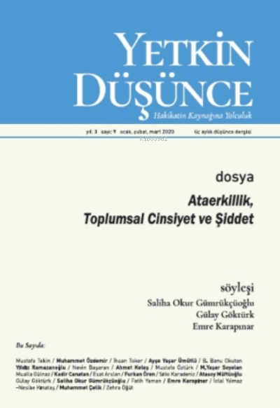 9. Sayımızı; YETKİN DÜŞÜNCE olarak, üçüncü yıla başlamanın ve iki yıl boyunca sizlerden aldığımız olumlu ve onurlandırıcı tepkilerin mutluluğu ile paylaşıyoruz. Bu sayıda dosyamıza artık müzmin bir yaramız haline gelen “Ataerkillik” ve “Şiddet” olgusunu, son zamanların oldukça tartışmalı konusu olan “Toplumsal Cinsiyet” kavramıyla beraber aldık. Ve bu vesile ile “İstanbul Sözleşmesi” ve onun tartışmalı maddeleri farklı kalemler tarafından kritik edildi. Aylarca tartışma yaratan böyle bir konuya o kadar farklı bakış ve yaklaşımların olması doğal idi; biz de bu farklı ve karşıt görüşleri/yorumları mümkün olduğunca yansıtmaya çalıştık. Yine çok değerli isimler dosyamıza katkıda bulundu: Mustafa Tekin-Muhammet Özdemir-İhsan Toker- Ayşe Yaşar Ümütlü-B. Banu Okutan-Yıldız Ramazanoğlu-Nevin Başaran- Ahmet Keleş-Mustafa Öztürk-M.Yaşar Soyalan-Mualla Gülnaz- Kadir Canatan- Esat Arslan-Furkan Ören-Atasoy Müftüoğlu. Aile içi kadına ve çocuğa şiddet ve bununla ilgili yasal düzenlemeler sürecinde ve sonucunda çokça hedef alınan “KADEM” ve görüşlerini aktarmak için Kadem başkanı Sn. Saliha Okur Gümrükçüoğlu ile bir söyleşi bulacaksınız. Yine bu çerçevede, birkaç yıldır basında pek görmediğiniz Gülay Göktürk ile de bir söyleşi gerçekleştirdik; zevkle okuyacağınızı umuyoruz. Kültür Sanat söyleşisi ise son zamanlarda TRT'nin yüzünü ağartan belgesel filmlerin genç yönetmenlerinden Emre Karapınar ile gerçekleşti. Muhammet Çelik'in hazırladığı, geçen yıl gerçekleşen kültür etkinliklerinin kısa bir özetinden sonra, Kadir Canatan ile Zehra Öğüt'ün yaptığı kitap kritiklerini de istifade ederek okuyacağınız kanısındayız.